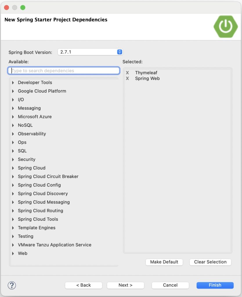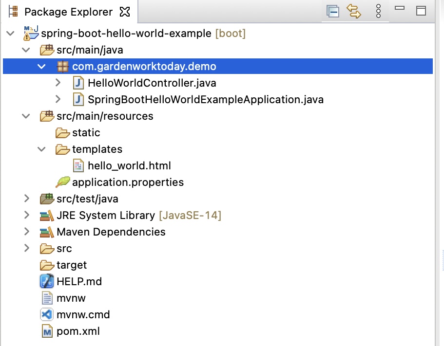 <?xml version="1.0" encoding="UTF-8"?> <project xmlns="http://maven.apache.org/POM/4.0.0" xmlns:xsi="http://www.w3.org/2001/XMLSchema-instance" xsi:schemaLocation="http://maven.apache.org/POM/4.0.0 https://maven.apache.org/xsd/maven-4.0.0.xsd"> <modelVersion>4.0.0</modelVersion> <parent> <groupId>org.springframework.boot</groupId> <artifactId>spring-boot-starter-parent</artifactId> <version>2.7.1</version> <relativePath/> <!-- lookup parent from repository --> </parent> <groupId>com.gardenworktoday</groupId> <artifactId>spring-boot-hello-world-example</artifactId> <version>0.0.1-SNAPSHOT</version> <name>spring-boot-hello-world-example</name> <description>Spring Boot Hello World Example</description> <properties> <java.version>17</java.version> </properties> <dependencies> <dependency> <groupId>org.springframework.boot</groupId> <artifactId>spring-boot-starter-thymeleaf</artifactId> </dependency> <dependency> <groupId>org.springframework.boot</groupId> <artifactId>spring-boot-starter-web</artifactId> </dependency> <dependency> <groupId>org.springframework.boot</groupId> <artifactId>spring-boot-starter-test</artifactId> <scope>test</scope> </dependency> </dependencies> <build> <plugins> <plugin> <groupId>org.springframework.boot</groupId> <artifactId>spring-boot-maven-plugin</artifactId> </plugin> </plugins> </build> </project>